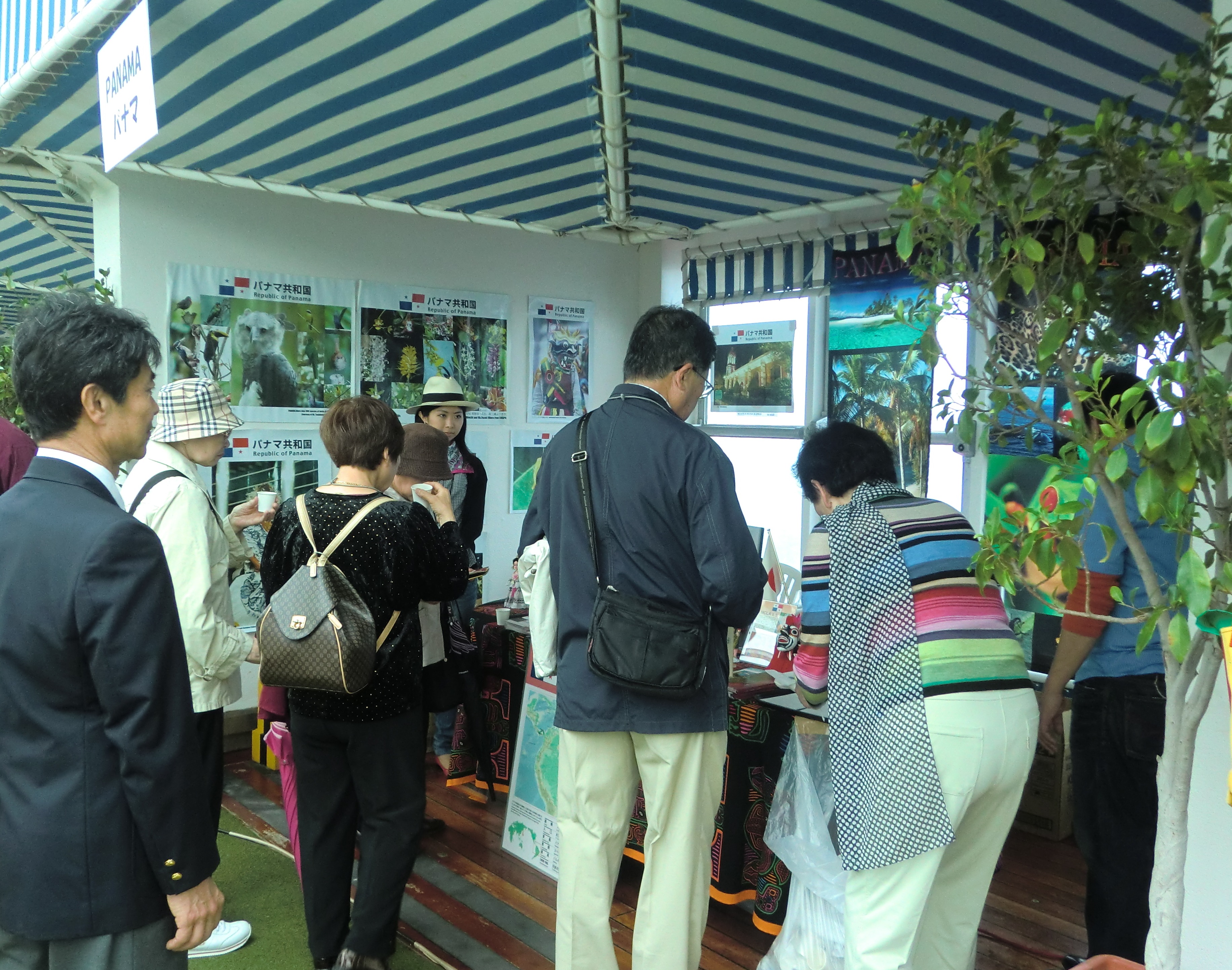 ブースでパナマコーヒーを試飲する来場者たち
